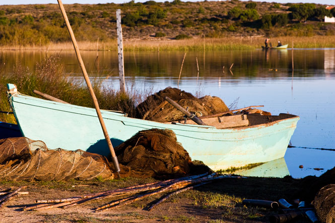 Es war ein wunderbarer Morgen. Hinter dem Strand lag ein kleiner See. Es lagen Boote und Netze am Ufer. Ein Ruderboot mit zwei Fischern zogen Netze ein. Die Möven flogen über den See und spiegelten sich im Wasser. Der See war wie ein Spiegel.